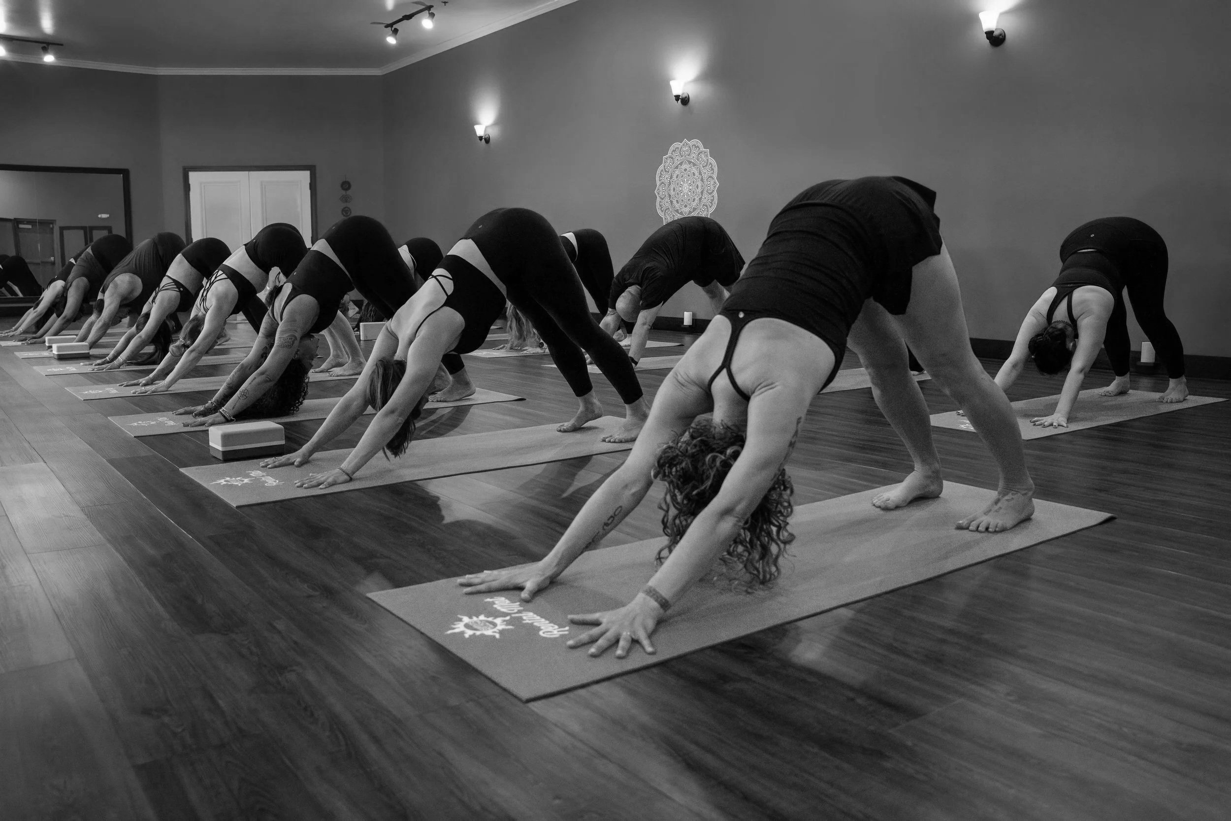 Arrive 15 minutes before scheduled class. Discuss any injuries or health issues with the teacher before class. Wear something youβre comfortable sweating in. Breathable fabric is most desirable. Women mainly wear leggings or shorts and a sports bra or tank top. Men are normally most comfortable in shorts and a t-shirt. Hydrate, hydrate, hydrate! Come to class on an empty stomach. Yoga mats, large towels, and bottled water are required in the studio. Please bring your own or we have them available for rent or purchase. Stay in the studio room for the full duration of class, this will help your body build endurance and calm your mind.